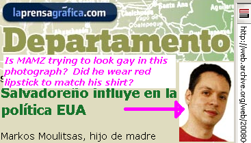 Marcos C. Alberto Moulitsas Zúñiga (MAMZ of DailyKos) wrote this "letter to the editor" of his college newspaper, vehemently opposing ALL gay participation in the US military. (If the Northern Illinois University Northern Star archive link no longer works, for the fifth time in three years, then you can still see a screen shot of the letter here.)
